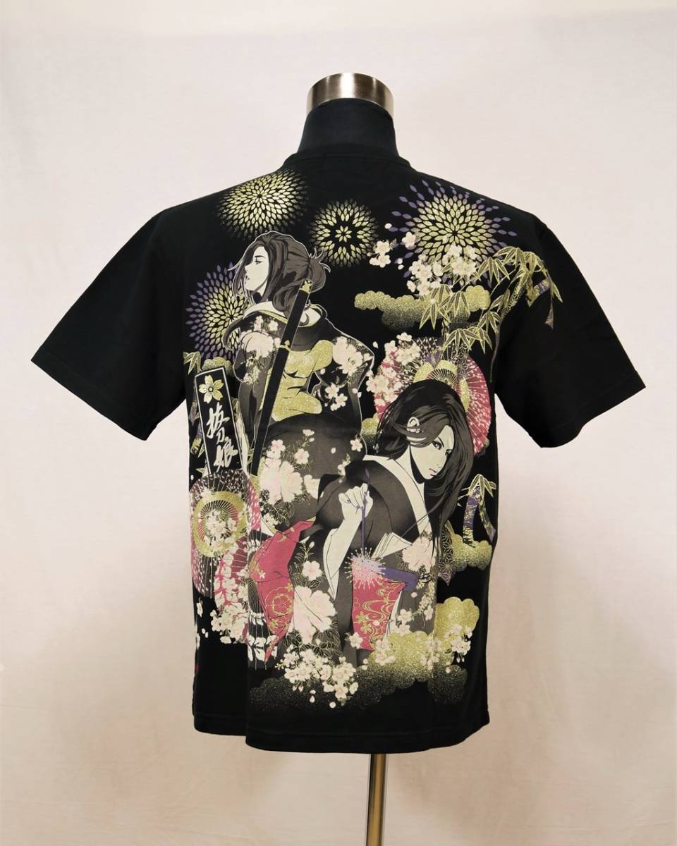 > ☆ 和柄 抜刀娘 292151 番傘花火 穂乃花&結愛 半袖Tシャツ ブラック XLサイズ・XXLサイズ ☆
