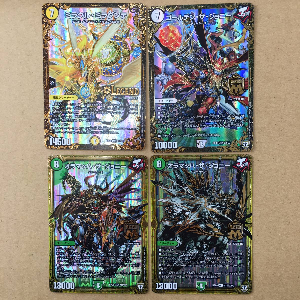 - デュエマ・マスターズ/オラマッハ・ザ・ジョニー/ゴールデン・ザ・ジョニー/ミラクル・ミラダンテ/各1枚合計4枚セット/未使用美品/送料無料