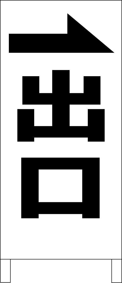 - シンプル立看板「出口右折(黒)」駐車場・最安・全長1m・書込可・屋外可