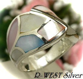 - シルバー925銀のシェル貝殻入り リングtypeV[リーフ パステルカラー]12号.13号.18号.21号より/シルバージュエリーALL50%OFF