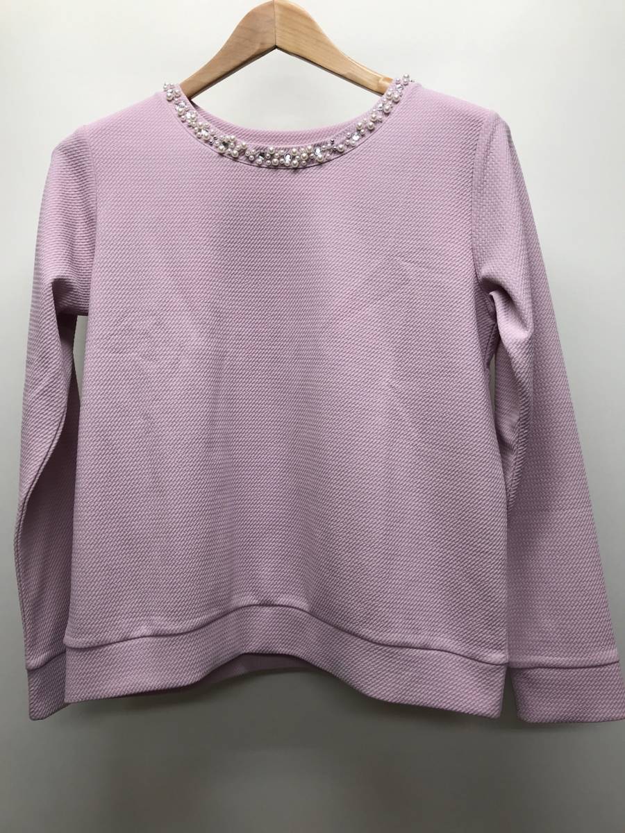- カットソー ビーズ 長袖 ラベンダー サイズL №055