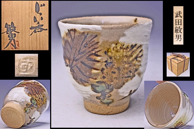 > 武田敏男 ★ 二彩唐津風ぐい呑 ★ 共箱栞 ★ 酒器 ★ 師:人間国宝 田村耕一 / 北出塔次郎 ★ 益子 ★