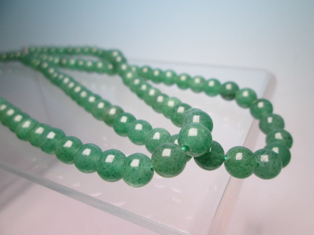 - ☆SILVER 緑石玉 7mm のロングネックレス 54g ケース付