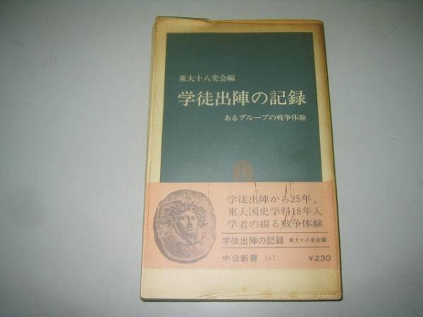 ご覧いただき有り難うございます。 学徒出陣の記録―あるグループの戦争体験 (中公新書 167) (単行本) 東大十八史会 (編さん) です。