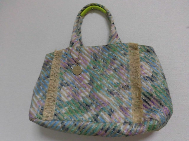 - ●未使用 美品 /SAZABY /サザビー /麻糸編み込み 大型バック/ チャーム付/鞄 バック