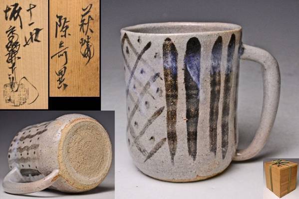 - 坂高麗左衛門 11代 ★ 萩焼 ビアジョッキ ★ 共箱 ★ 希少作 ★ ポップなデザイン