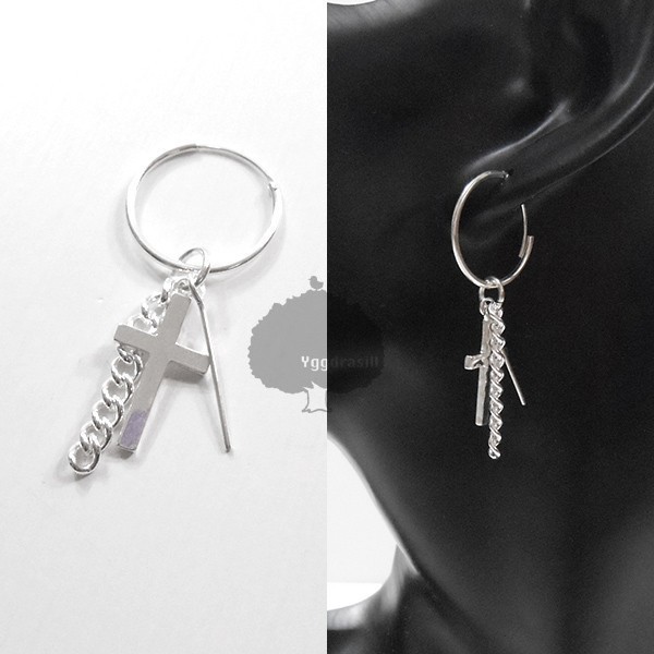 - YGG★新品 G-dragon着 クロスチャーム チェーン付き フープピアス Bタイプ シルバー 銀 ジヨン愛用
