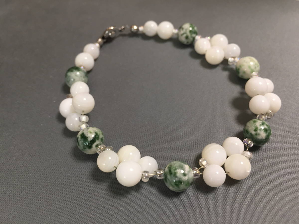 - ◎ピクチャーツリーアゲートとシェルビーズのブレスレット19cm(内周)