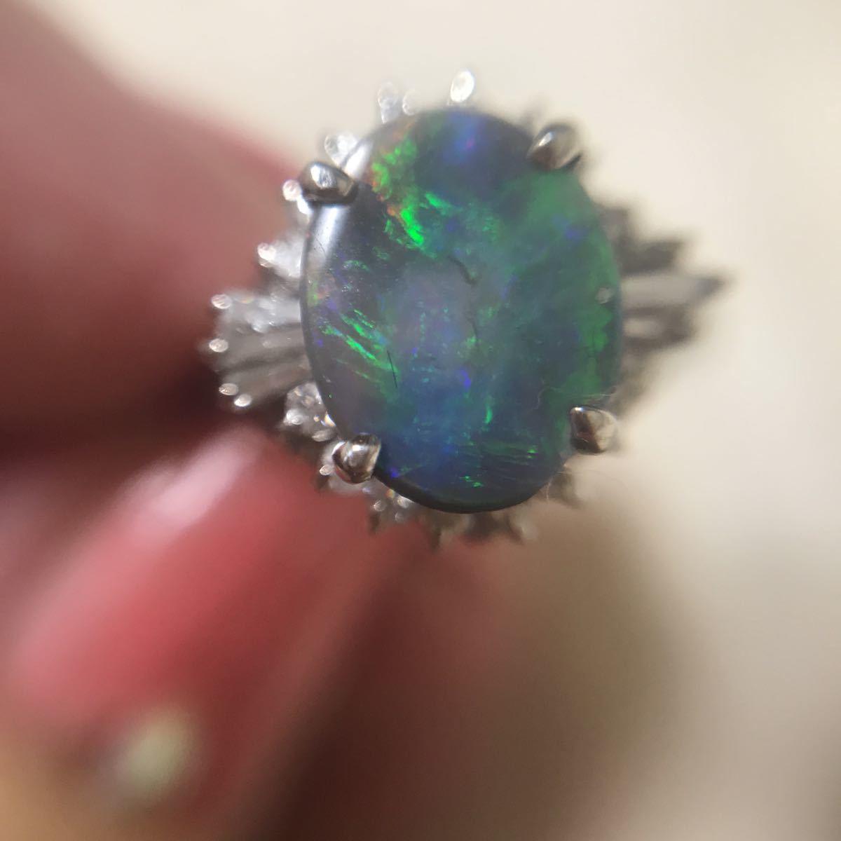 - 青緑色遊色美しい!ソーディング付きブラックオパールリング
