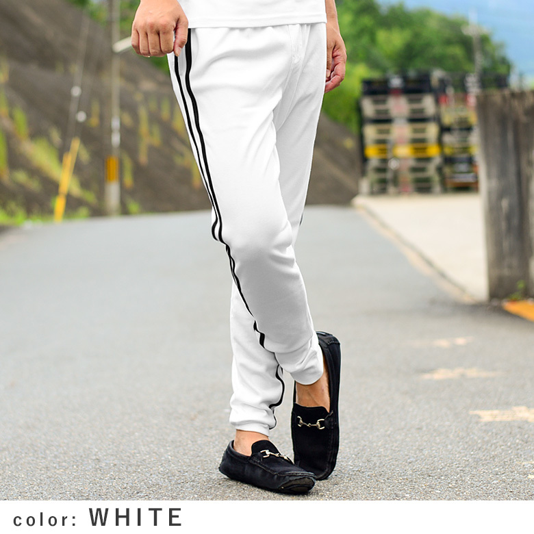 - 2本サイドラインストレッチジョガーパンツ jb-92287新品ホワイトLL