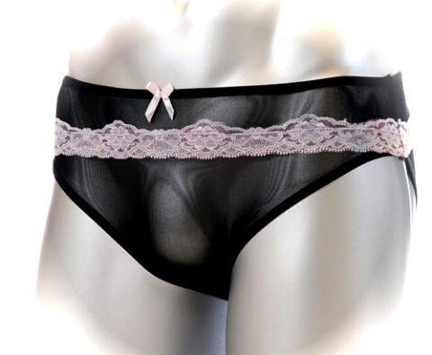 - 『送料無料』 ★メンズ ビキニショーツ★可愛いぃ すけすけ オールメッシュ地★M~L 黒&ピンク★