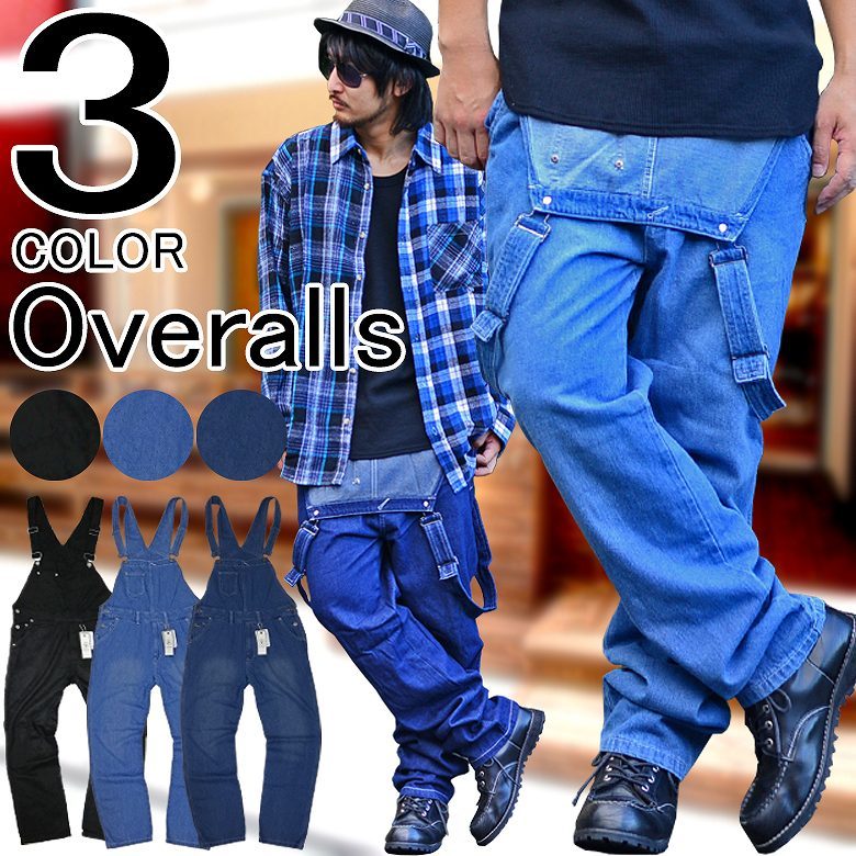 - デニム素材オーバーオール デニムサロペット メンズ おしゃれ ツナギ 32l0404新品ブルーM