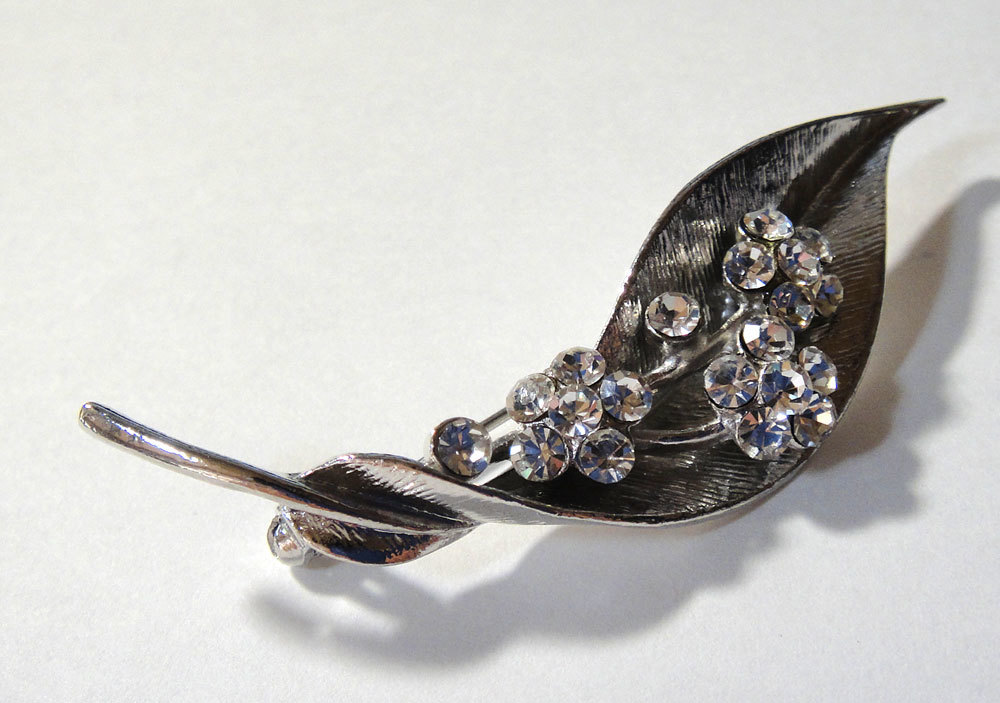 - ■sa_026 昭和レトロ アンティーク コスチュームジュエリー ブローチ ★ 帯留にも キラキラ 葉っぱ 銀色