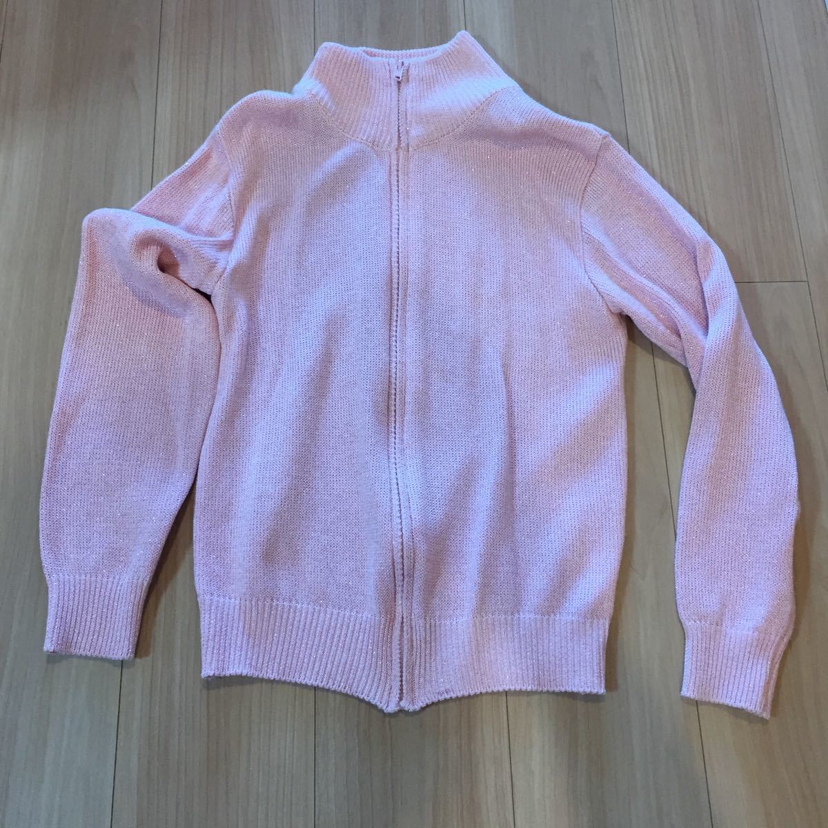 - ジップアップ ラメ ピンク カーディガン 羽織 美品 ニットカーディガン HOTTE GIRL