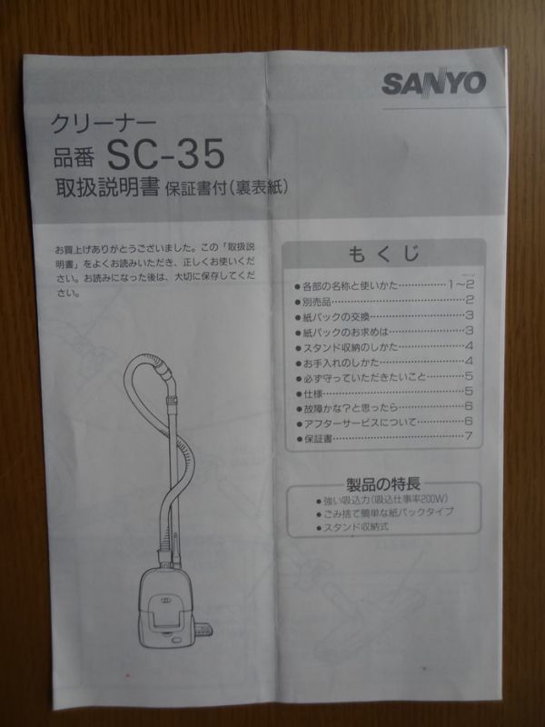 - [取扱説明書] サンヨー クリーナー SC-35 (1992年)