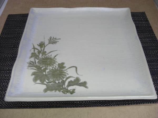 - 新品 未使用【即決】陶磁器製 29cm 角皿 手描 大皿