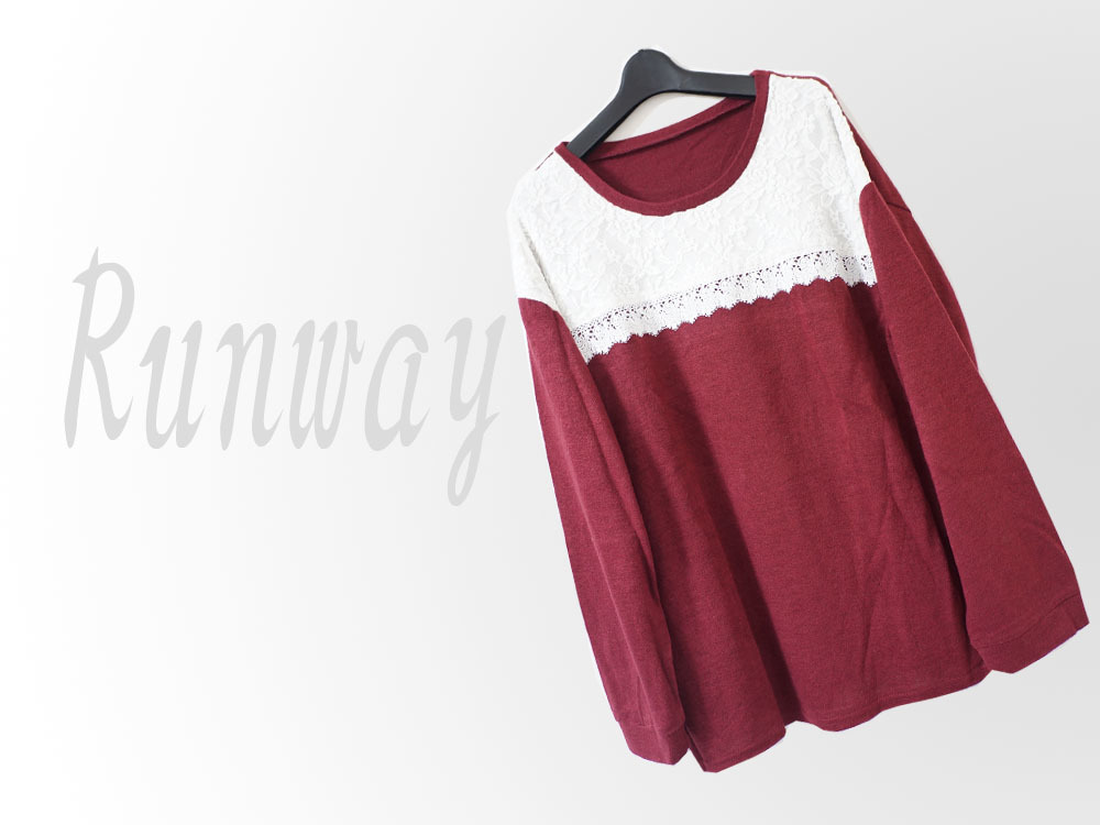 > ●新品/Human 2nd Occasion/チュニック/ニット/ボルドー/レース/3L/レディース●f6675