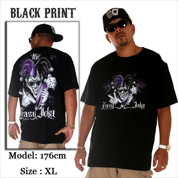 - 新品 XL BLACK PRINT/ブラックプリント Tシャツ JOKER ブラック パープル ローライダー LA ピエロ メキシカン ギャング アメージング 黒 紫