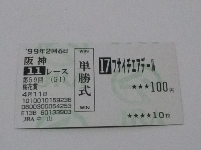 - 1999年 桜花賞 フサイチエアデール 単勝記念馬券