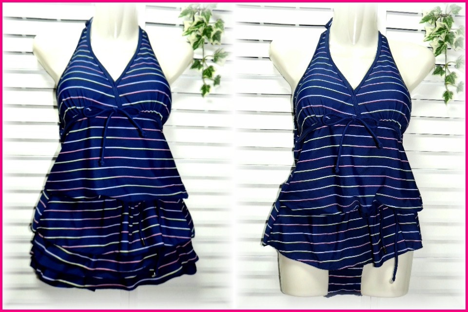 - E'pate セパレート水着 ティアードスカートセット 7号/S ネイビー×ボーダー