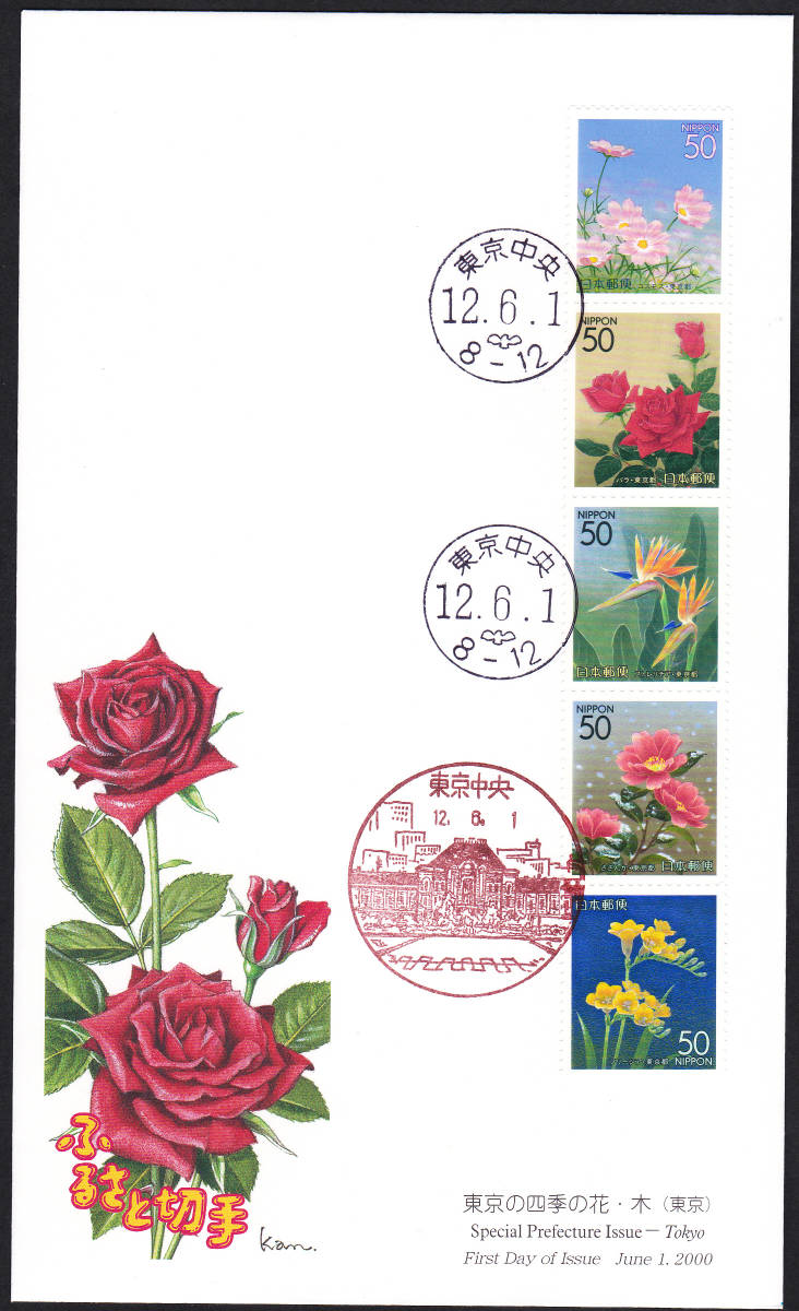- FDC 2000年 ふるさと切手 東京の四季の花 50円5貼 JPA