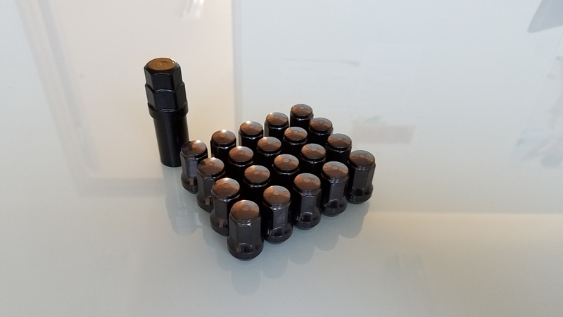 - ホイールナット ロックナット M12×P1.5 ブラック スチール製 非貫通タイプ テーパー角60度 七角形型 専用アダプター付 1台分セット