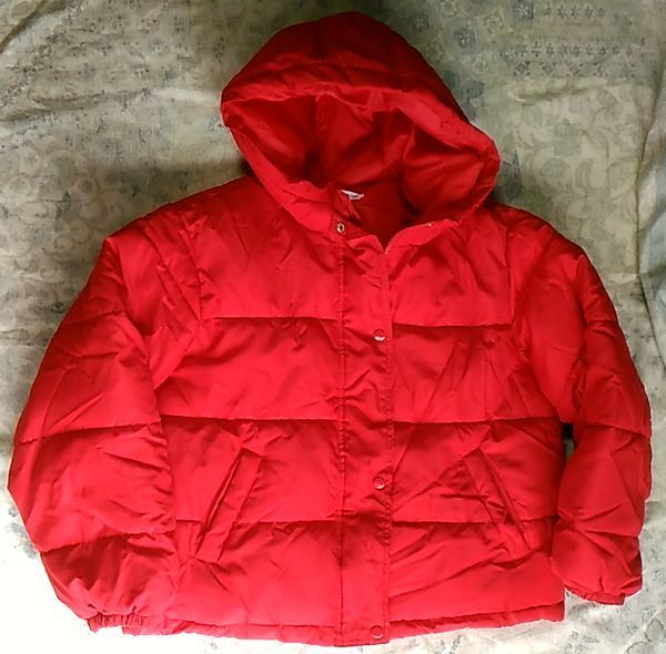 > OLIVE des OLIVE フード付き中綿ジャケット Mサイズ 赤色 アウター ポリエステル 中綿ブルゾン オリーブ・デ・オリーブ