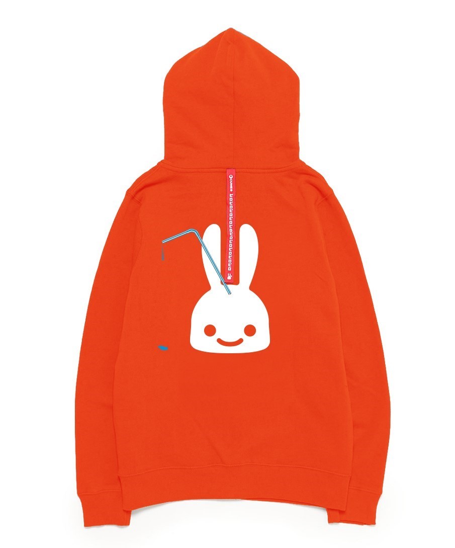 - 限定品 CUNE キューン 復刻 ジップパーカー オレンジ 『ストロー』 前後プリント ピロ2付き M・身幅約53cm※未使用/商品タグ付き/2019年品