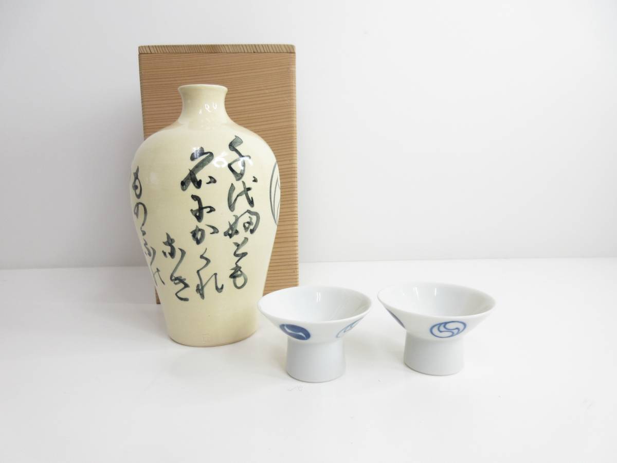 > 未使用品◆柴田好寛 寶泉窯 酒器セット 徳利 お猪口 3点セット 柄違 白 熱燗 冷酒 管理2002 P-5