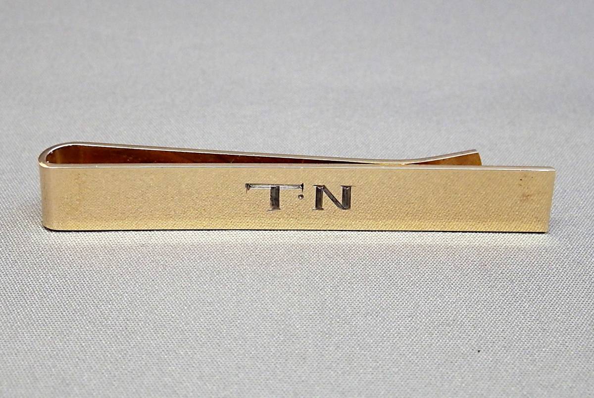 - EU-0057■KREMENTZ クレメンツ USA タイバー イニシャル入り「T・N」 ゴールドカラー 中古