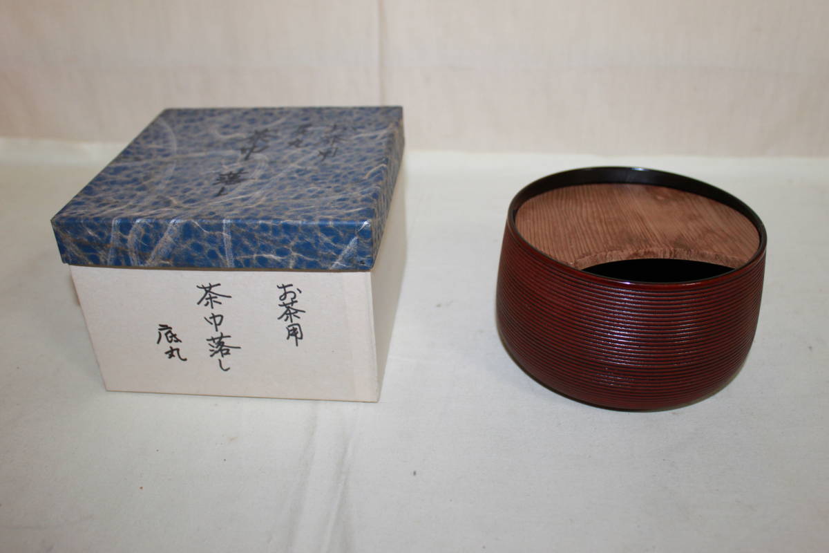 - ◆茶道具 茶器【木製 横筋 茶巾落し/尻丸】紙箱入