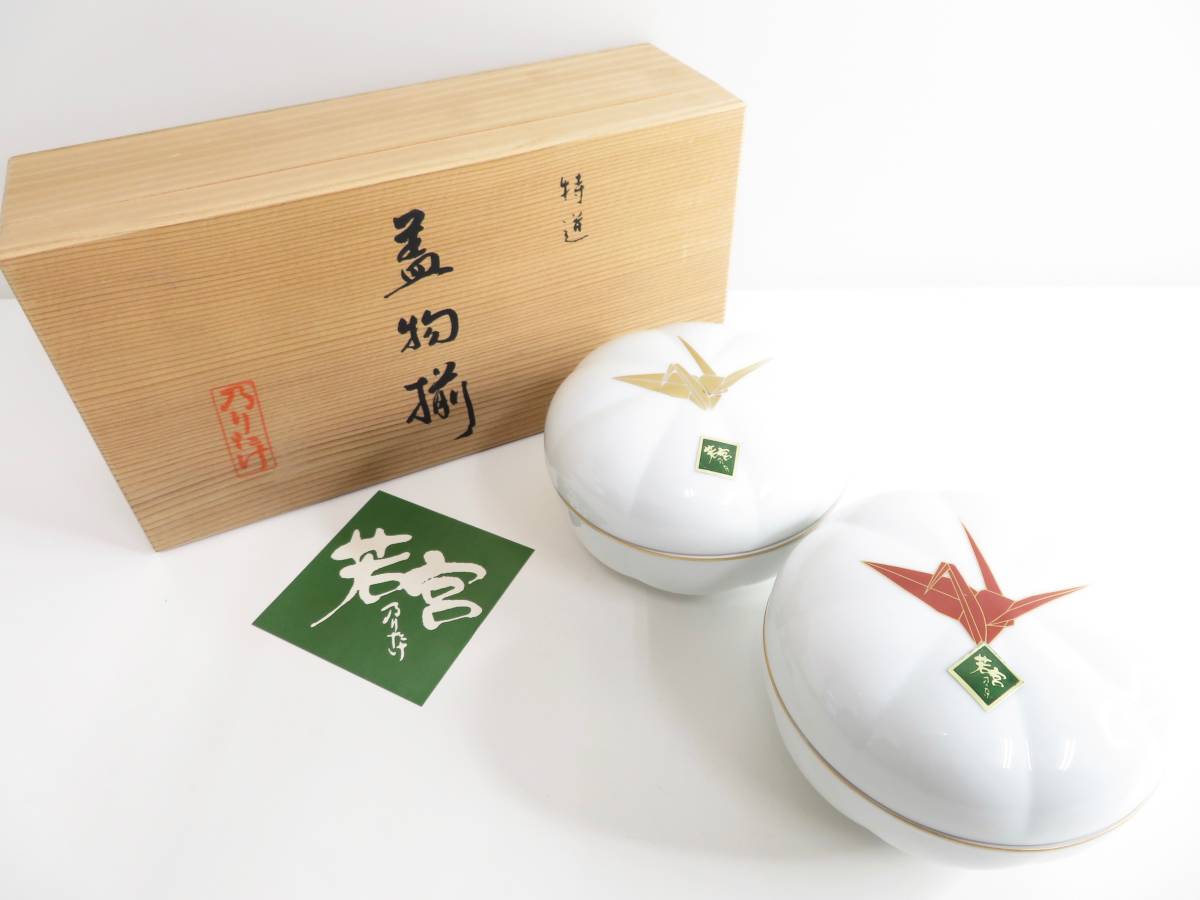 - 未使用品▲Noritake ノリタケ 乃りたけ 蓋物揃 小鉢 蓋付 漬物入れ 小物入れ 鶴 木箱入り 管理2003 K-13