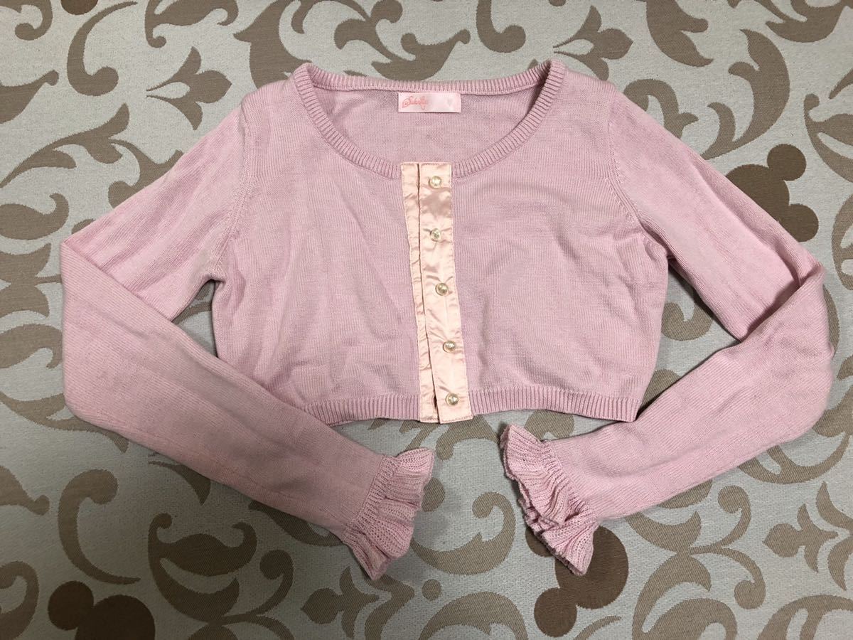 > スワンキスswankiss ショート丈長袖フリルカーディガン ロリータ系 ピンク 春パステルカラー ガーリー スウィート 前開きニットトップス