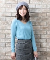 - any SiS エニィスィス ★ 細見え カシミヤ混 ケーブル編み 長袖 ニット Vネック 3 ブルー L 大きい 11号 セーター 水色