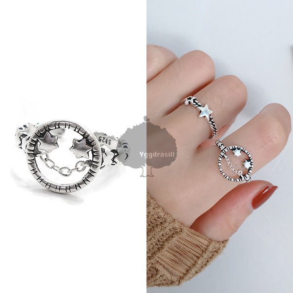 - YGG★スマイリー×チェーン スター リング 指輪 シルバー スマイル 星 ニコちゃん フリーサイズ SMILE