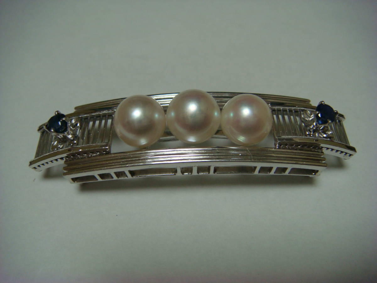 - ◇アンティーク パール サファイヤ 帯留め K14WG◇