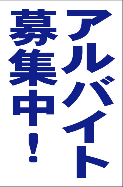 - シンプル縦型看板「アルバイト募集中(青)」【工場・現場用】屋外可