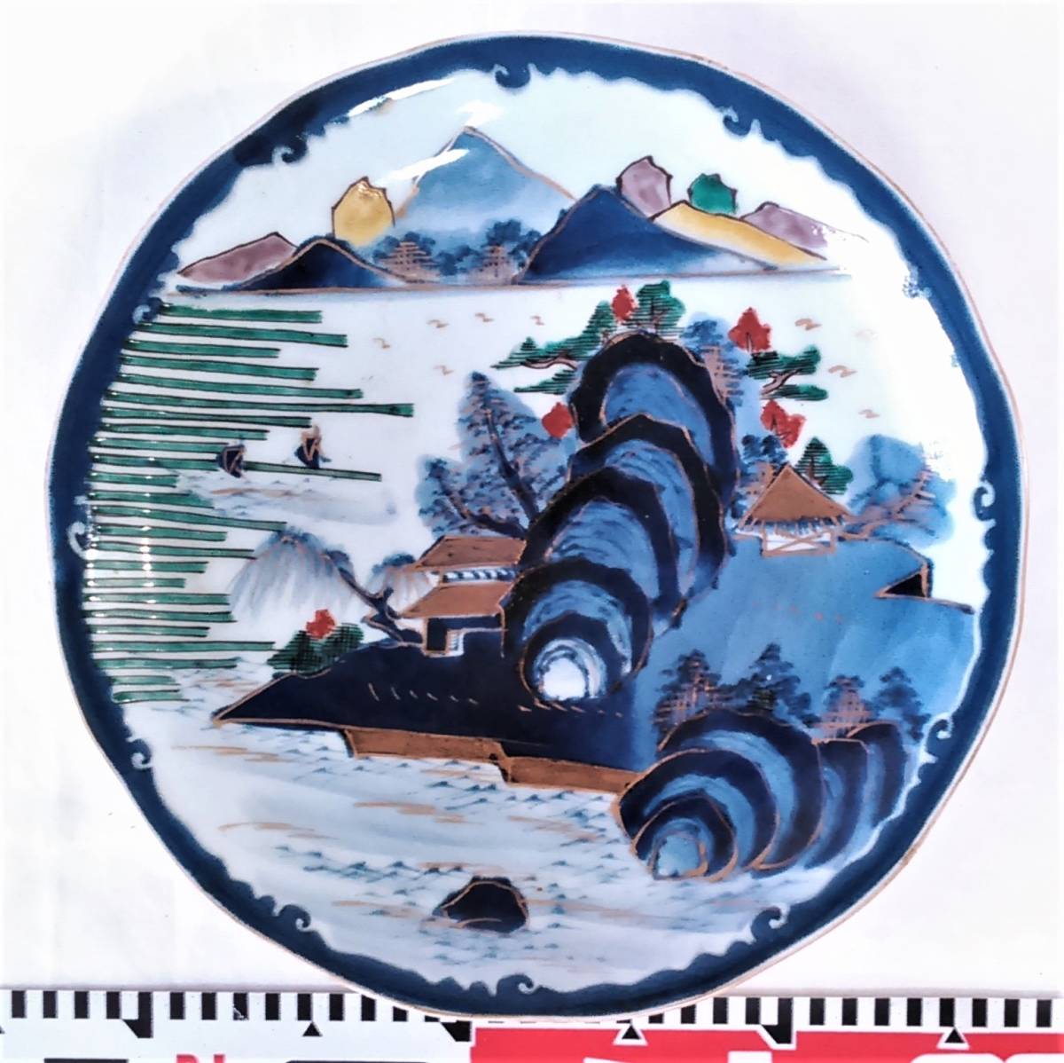 - ※蔵出《有田焼 染錦?:③ 丸型中皿》(極彩色/手書風景画)[箱無・中古]※