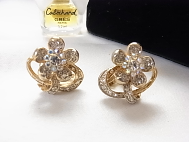 - 輝くジルコンストーン 花弁の中央はオーロラカラー調に煌めく お花 フラワー イヤリング◆