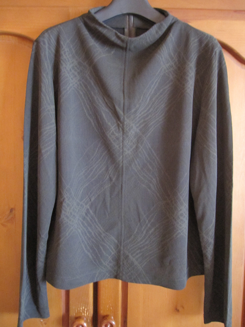 > breckenridge ブレッケンリッジ 後ろファスナーブラウス 深緑×ラフなライン模様 9号 ナイガイ 難あり 秋色