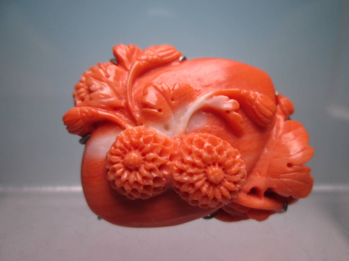 - ☆アンティーク・本珊瑚 菊花彫刻の帯留め 11,61g