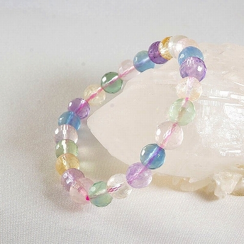 - アメジスト フローライト シトリン ローズクォーツ4色(8㎜)ブレスレット L 内周約18cm A1636