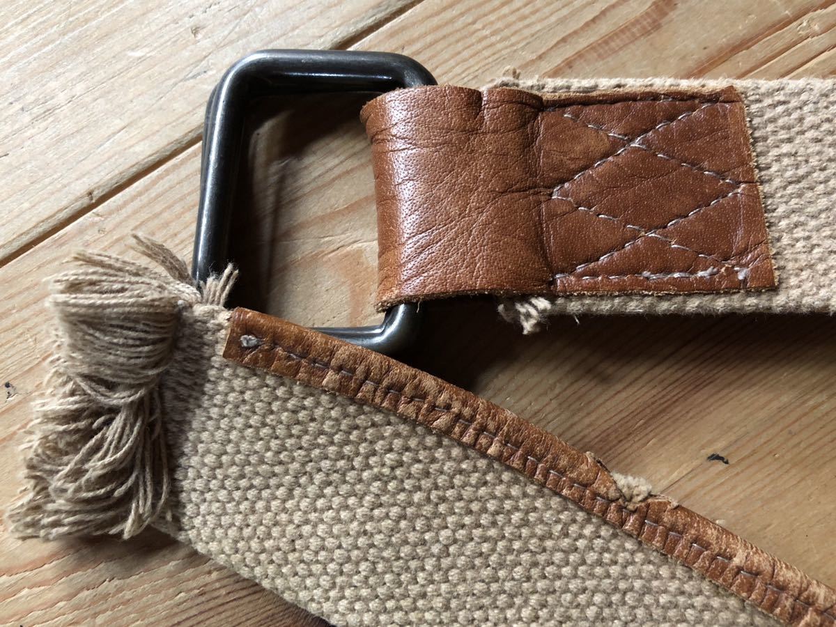 - いい味 ヴィンテージ加工 キャンパス革 バンド こだわり 布 お洒落 ベージュ アメリカン★オシャレ111.5×4.2cmアメカジ男女兼用ビンテージ