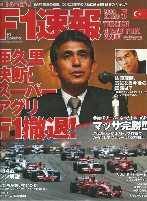 - F1速報2008年rd.5トルコGP号「亜久里決断!スーパーアグリF1撤退!」佐藤琢磨/ホンダ/トヨタ