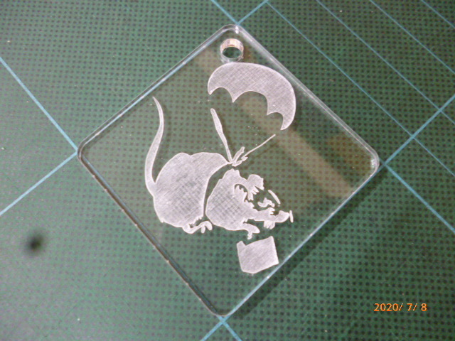 - 自作 彫刻 アクリルキーホルダー バンクシー Parachuting rat / パラシュートネズミ 約67×67mm(5×5cm) 送料 全国一律¥400 新品[Q-007]