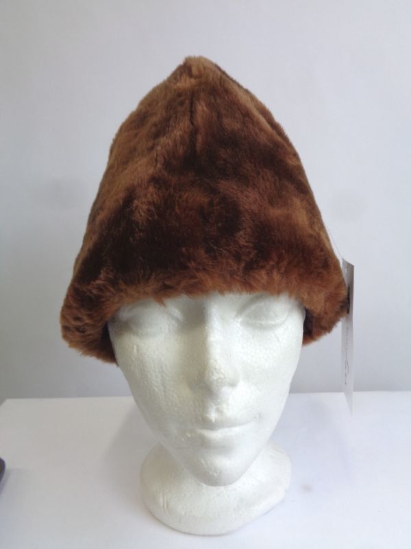 - メンズ ブラウン・シェアード・ラム毛皮ファー・ハット 帽子 サイズ53.5㎝