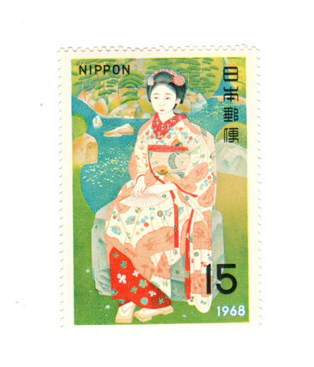 - 昭和43年1968「切手趣味週間/舞妓林泉・土田麦僊画」15円切手・未使用【送料無料】「熊五郎の切手」00800304