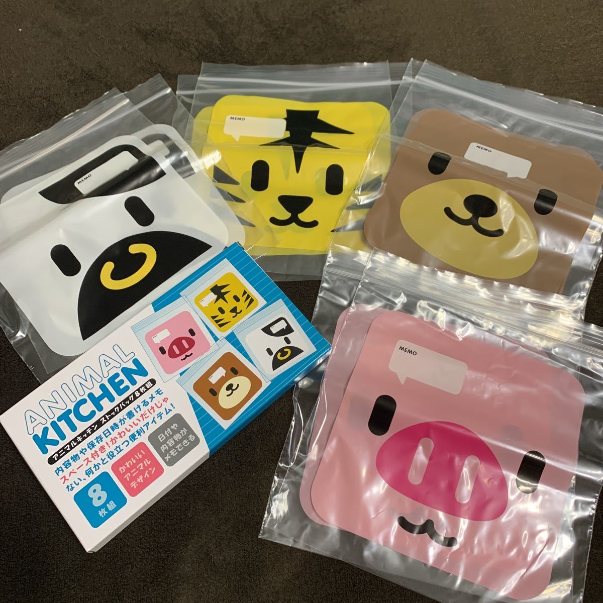 - 新品未使用 希少 アニマルキッチン ストックバッグ 4種計8枚 ジップロック ポリエチレン 動物 お弁当 ランチバッグ 幼稚園 ジッパー