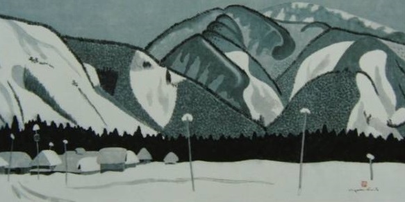 - 斎藤清、【会津の冬(99)若松 上三寄】、希少な大判額装用画集より、美品、新品額装付、送料無料