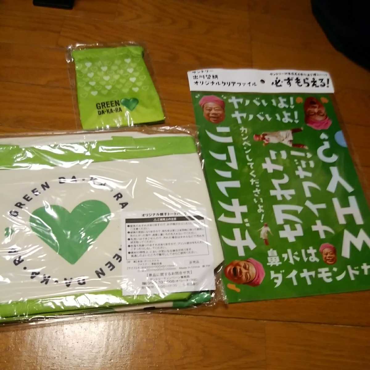 - 即決! 送料込 サントリー グリーンダカラ オリジナル親子トートバッグ&オリジナルポシェット&クリアファイル(新品未使用未開封)